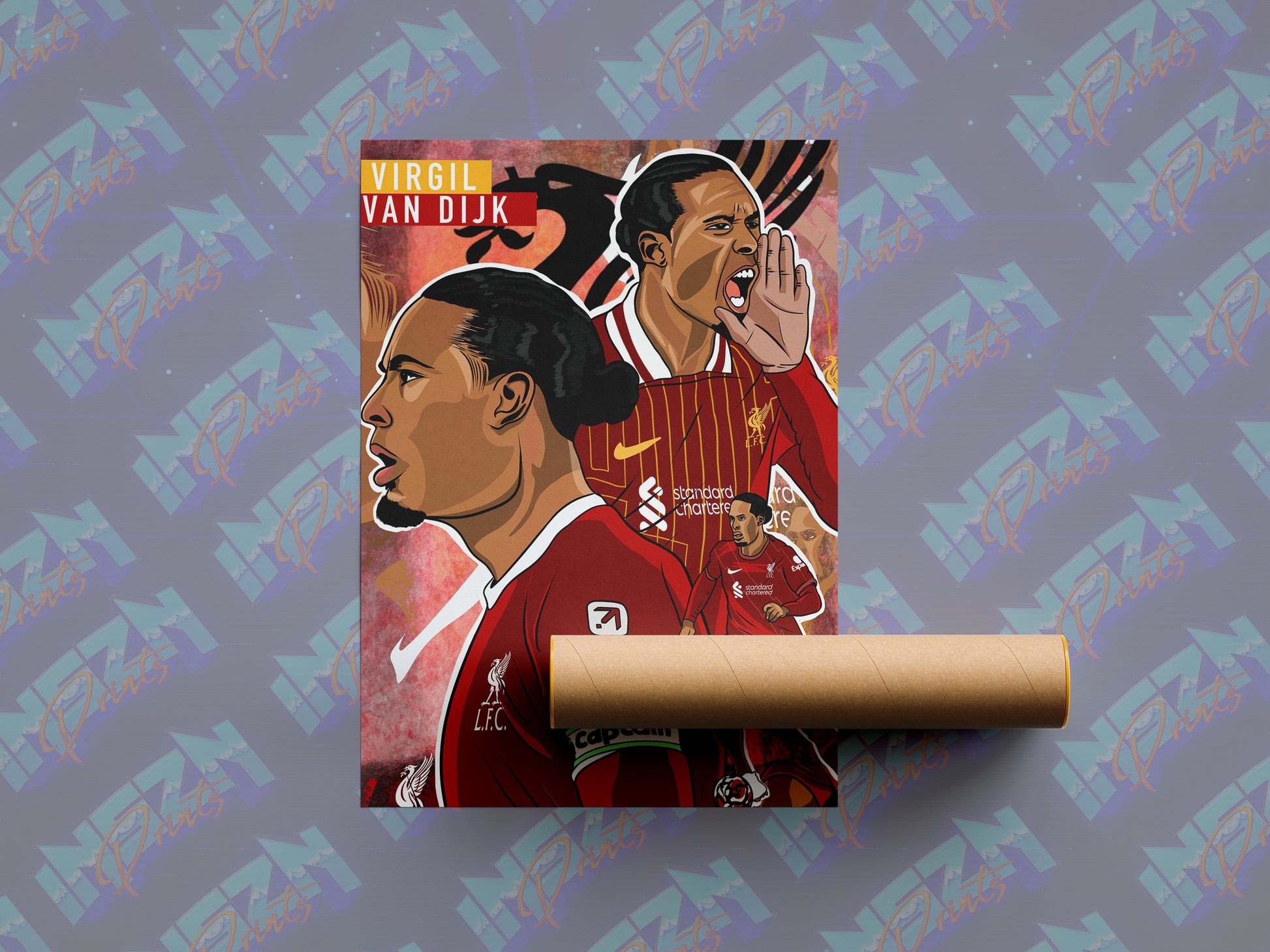 Bring bold energy to your space with this digital illustration of football superstar Virgil Van Dijk. A perfect gift for Jota fans, Liverpool FC supporters or a stylish upgrade to your own wall decor.